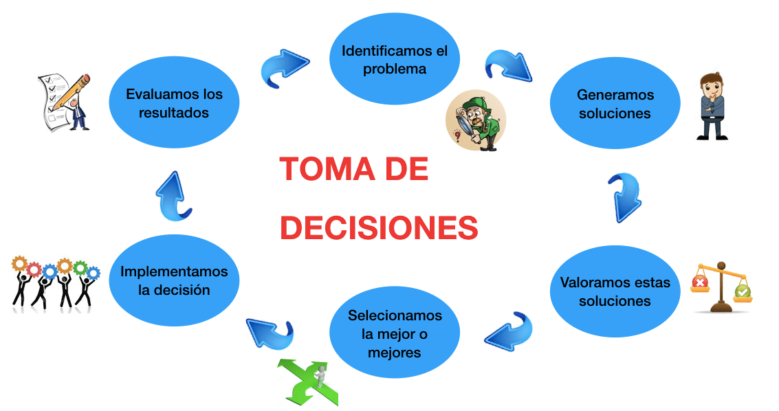 Si esa solución no era la correcta, buscamos otra. Ya sabéis, todo tiene solución y, como podéis ver en la imagen, la toma de decisiones es un círculo. Podemos empezar cada vez que haga falta y darle las vueltas que sean necesarias para encontrar la solución que necesitamos.